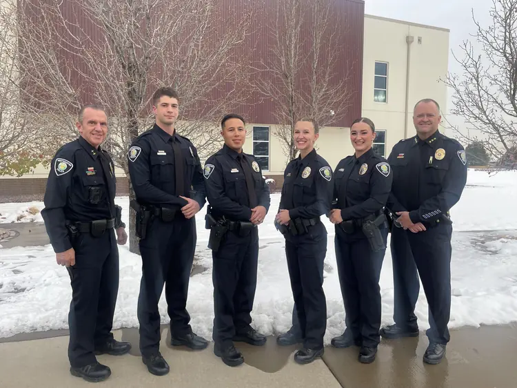 (pictured left to right: Deputy Chief Lester, Officer Black, Officer Armendariz, Officer Burke, Officer Hempstead, Chief Haubert)