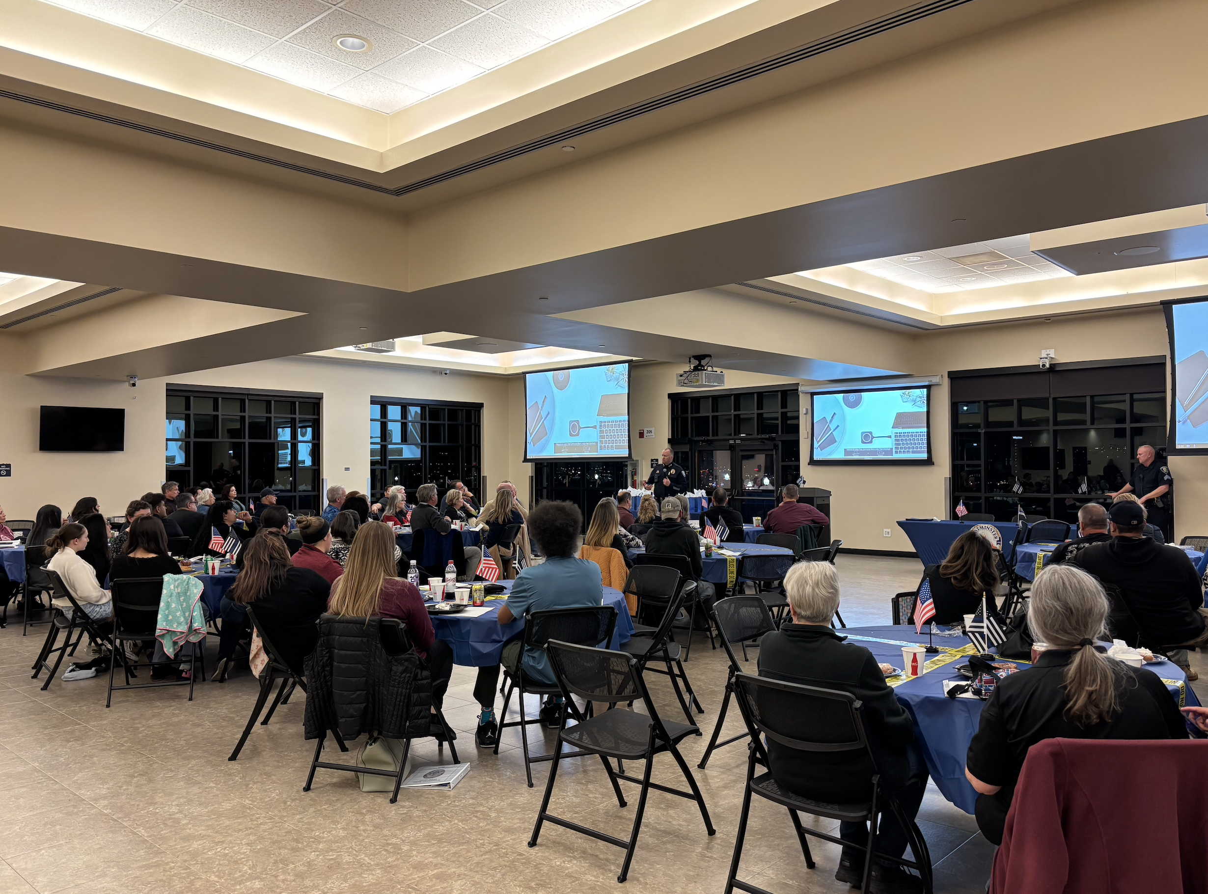 Citizens Police Academy graduates sitting in a room for their graduation celebration.