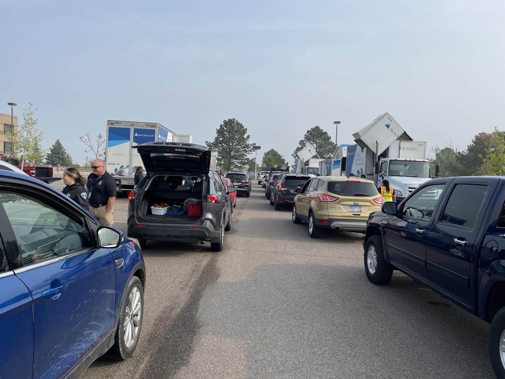 Vehicles lined up for Shred-A-Thon event at the Westminster Public Safety Center.
